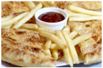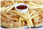 Πιπεριά, φέτα, ελιές, ντομάτα, σάλτσα ντομάτας, ρίγανη, μίξη ημίσκληρων τυριών, πατάτες, dip sauce (contains chopped green peppers, tomatoes, oregano, a mixture of semi-hard cheese, feta, fries and dip sauce)