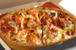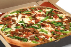 Πίτσα με ζαμπόν, μπέικον, φρέσκα μανιτάρια, πιπεριές, ντομάτα, σάλτσα ντομάτας και μίξη ημίσκληρων τυριών με μοτσαρέλα (pizza with a mixture of semi- hard cheese and mozarella, ham, tomatoes, bacon and peppers and fresh mushrooms)