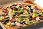 Πίτσα με πιπεριές, ελιές καλαμών, κρεμμύδι, ντομάτα, σάλτσα ντομάτας και μίξη ημίσκληρων τυριών με Φέτα (pizza with peppers, onions, olives, tomatoes, oregano and a mixture of semi-hard cheese and feta)