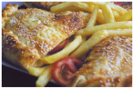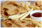 Γαλοπούλα, dressing μαγιονέζας, ντομάτα, μίξη ημίσκληρων τυριών, πατατες και dip sauce (contains turkey meat, mayonnaise dressing, tomatoes, a mixture of semi-hard cheese, fries and dip sauce)