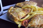 Ζαμπόν, μπέικον, dressing μαγιονέζας, ντομάτα, μίξη ημίσκληρων τυριών, πατατες και dip sauce (contains ham, bacon, mayonnaise dressing, tomatoes, a mixture of semi-hard cheese, fries and dip sauce)