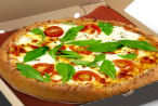 Πίτσα με σάλτσα ντομάτας, μίξη ημίσκληρων τυριών με μοτσαρέλα, βασιλικό, φρέσκια ντομάτα, προσούτο και ρόκα (italian pizza with chopped tomatoes, mozzarella, prosciutto, rocket, basil and a mixture of semi-hard cheese)