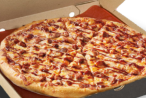 Πίτσα με φιλέτο στήθος κοτόπουλο, μπάρμπεκιου σως, σάλτσα ντομάτας και μίξη ημίσκληρων τυριών (pizza with barbecue sauce, chicken fillet, and a mixture of semi-hard cheese)
