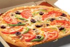 Πίτσα με πιπεριές, ελιές καλαμών, κρεμμύδι, ντομάτα, σάλτσα ντομάτας και μίξη ημίσκληρων τυριών με Φέτα (pizza with peppers, onions, olives, tomatoes, oregano and a mixture of semi-hard cheese and feta)
